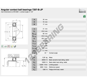 El Rodamiento De Bolas, conocido como 7207-B-XL-JP-FAG FAG, tiene un diámetro interior de 35 mm, un diámetro exterior de 72 mm y un espesor de 17 mm.