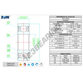 El Rodamiento De Bolas, conocido como RLS10-2Z-ZEN ZEN, tiene un diámetro interior de 31.8 mm, un diámetro exterior de 69.9 mm y un espesor de 17.5 mm.