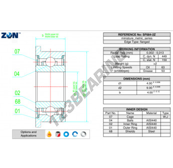 El Rodamiento De Bolas, conocido como SF684-ZZ-ZEN ZEN, tiene un diámetro interior de 4 mm, un diámetro exterior de 9 mm y un espesor de 4 mm.