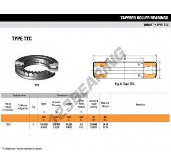 El Rodamiento Axial De Rodillos, conocido como T600-TIMKEN TIMKEN, tiene un diámetro interior de 152.4 mm, un diámetro exterior de 241.3 mm y un espesor de 76.2 mm.