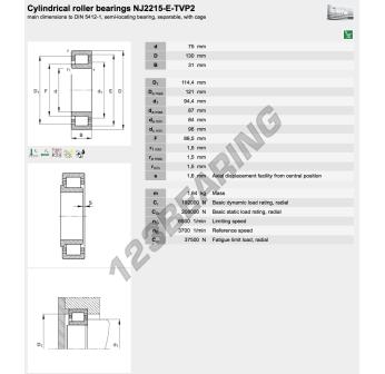 El Rodamiento Rodillos, conocido como NJ2215-E-TVP2-FAG FAG, tiene un diámetro interior de 75 mm, un diámetro exterior de 130 mm y un espesor de 31 mm.