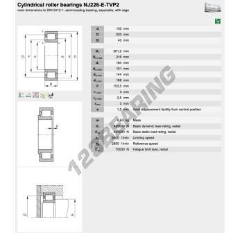 El Rodamiento Rodillos, conocido como NJ226-E-TVP2-FAG FAG, tiene un diámetro interior de 130 mm, un diámetro exterior de 230 mm y un espesor de 40 mm.