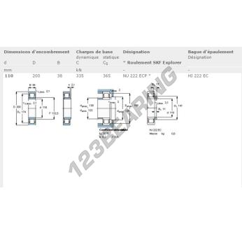 El Rodamiento Rodillos, conocido como NU222-ECP-SKF SKF, tiene un diámetro interior de 110 mm, un diámetro exterior de 200 mm y un espesor de 38 mm.