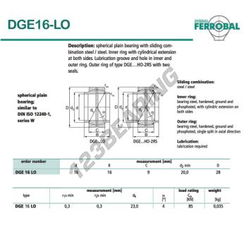 La Rótula Ge conocida como DGE16-LO-DURBAL DURBAL tiene un diámetro interior de 16 mm, un diámetro exterior de 28 mm y un espesor de 9 mm.