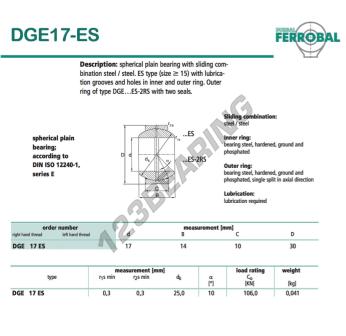 La Rótula Ge conocida como DGE17-ES-DURBAL DURBAL tiene un diámetro interior de 17 mm, un diámetro exterior de 30 mm y un espesor de 10 mm.