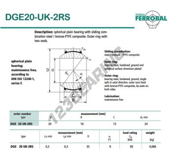 La Rótula Ge conocida como DGE20-UK-2RS-DURBAL DURBAL tiene un diámetro interior de 20 mm, un diámetro exterior de 35 mm y un espesor de 16 mm.