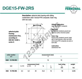 La Rótula Geew conocida como DGE15-FW-2RS-DURBAL DURBAL tiene un diámetro interior de 15 mm, un diámetro exterior de 30 mm y un espesor de 10 mm.