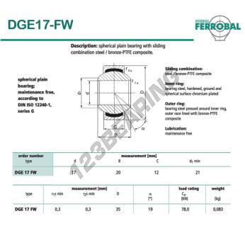 La Rótula Geew conocida como DGE17-FW-DURBAL DURBAL tiene un diámetro interior de 17 mm, un diámetro exterior de 35 mm y un espesor de 12 mm.