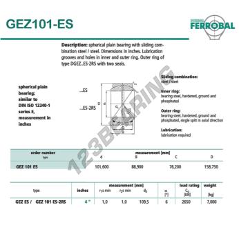 La Rótula Geew conocida como GEZ101-ES-DURBAL DURBAL tiene un diámetro interior de 101.6 mm, un diámetro exterior de 158.75 mm y un espesor de 76.2 mm.