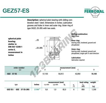 La Rótula Geew conocida como GEZ57-ES-DURBAL DURBAL tiene un diámetro interior de 57.15 mm, un diámetro exterior de 90.488 mm y un espesor de 42.85 mm.