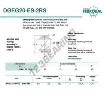 La Rótula Geg conocida como DGEG20-ES-2RS-DURBAL DURBAL tiene un diámetro interior de 20 mm, un diámetro exterior de 42 mm y un espesor de 16 mm.