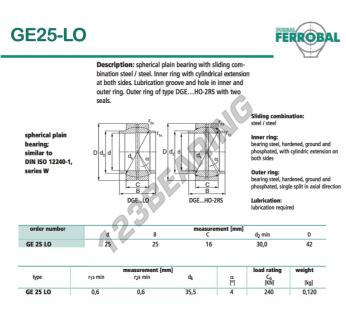 La Rótula Geg conocida como GE25-LO-DURBAL DURBAL tiene un diámetro interior de 25 mm, un diámetro exterior de 42 mm y un espesor de 16 mm.