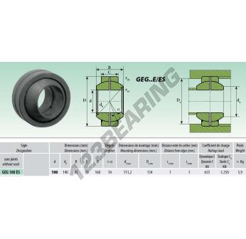 La Rótula Geg conocida como GEG100-ES Genérico tiene un diámetro interior de 100 mm, un diámetro exterior de 160 mm y un espesor de 85 mm.